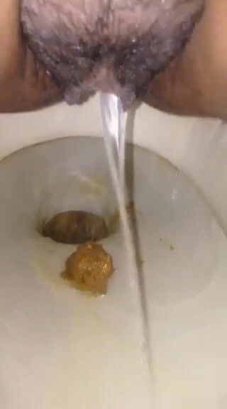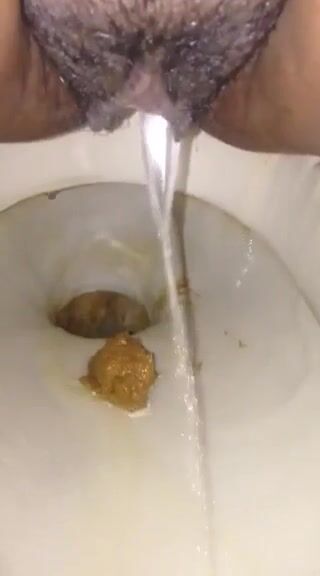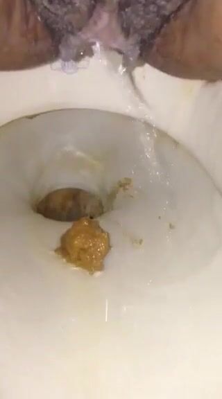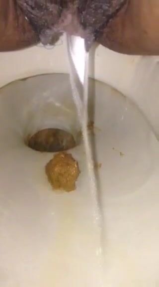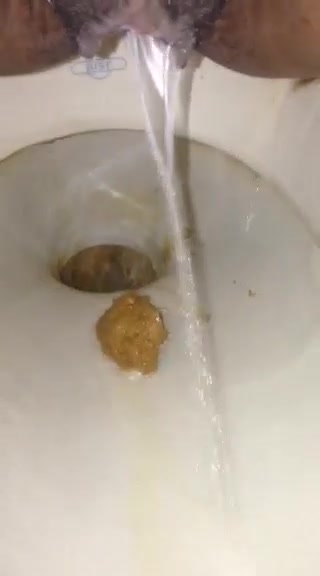 Girl open wide legs and shitting on the toilet floor