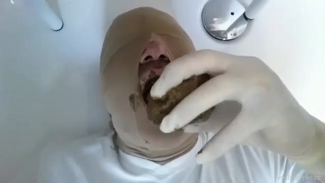 Mulher enchendo a boca do homem de merda