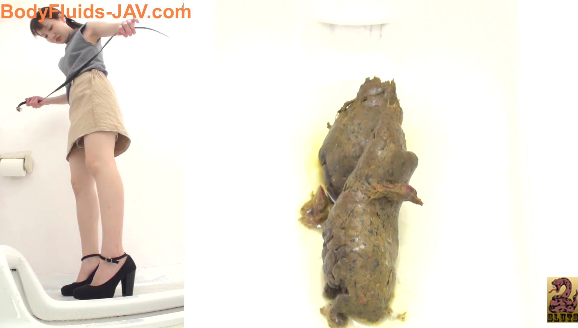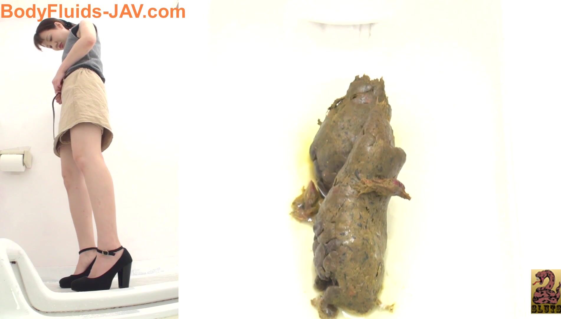 Japanese girl dropping one off in public toilet