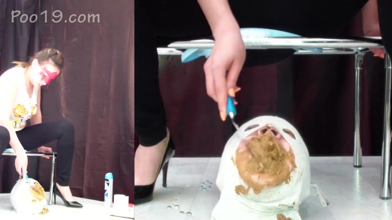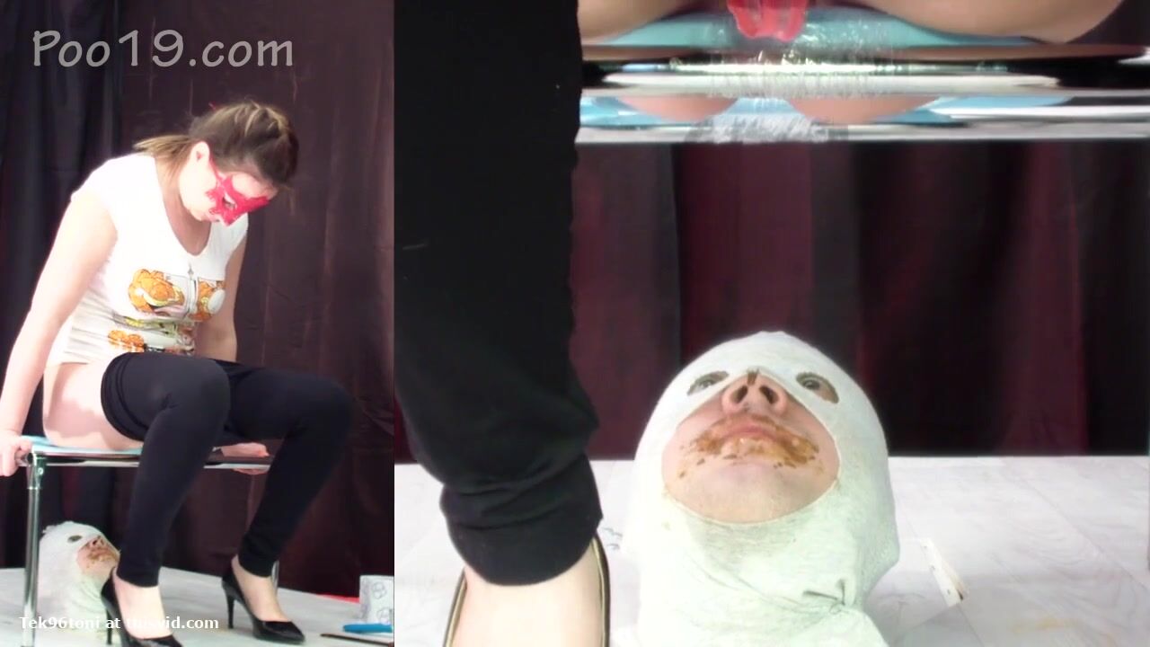 Masked blonde eating her own shit