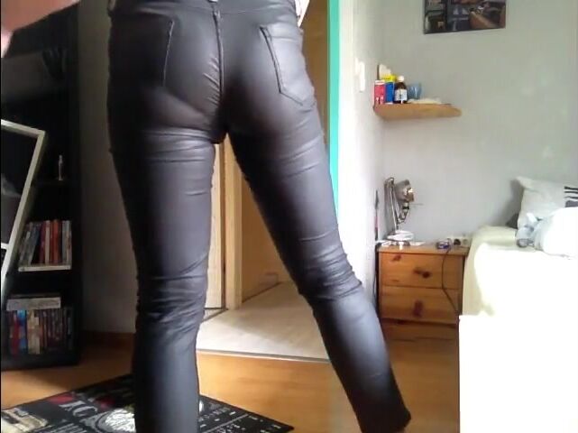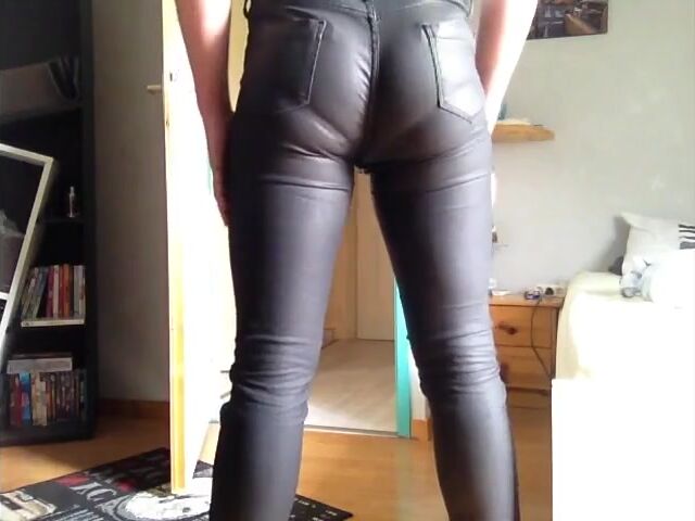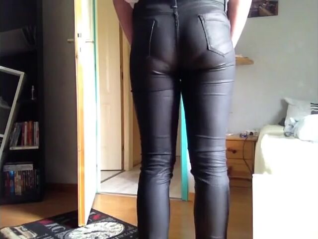 mature leather pants pooping