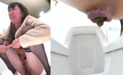Young Japanese girl taking huge turd