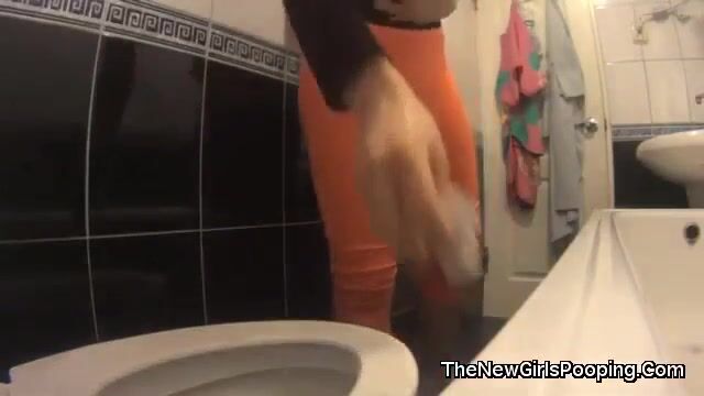 sexy girl strong diarrhea and farts in the toilet