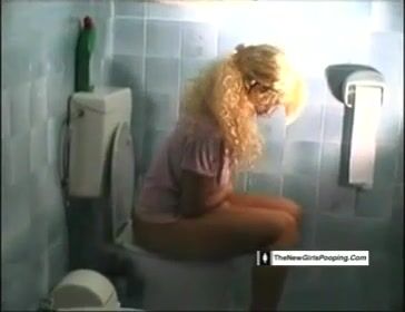 Blonde farting and pooping on toilet
