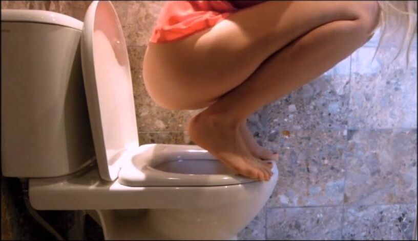 blond beauty pooping in toilet - video 2