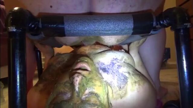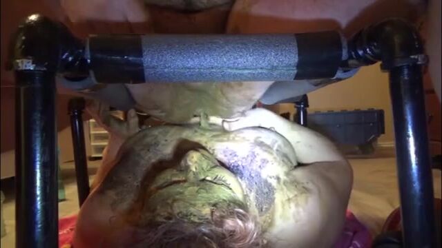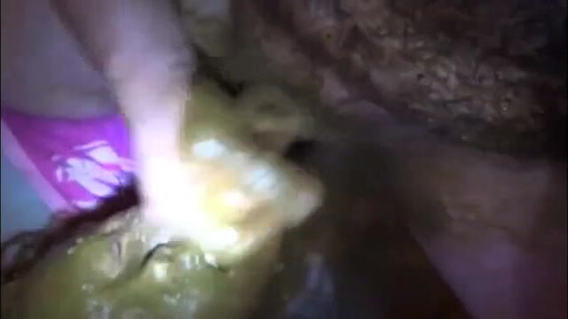 Mature bbw shitting and smear it on her feet