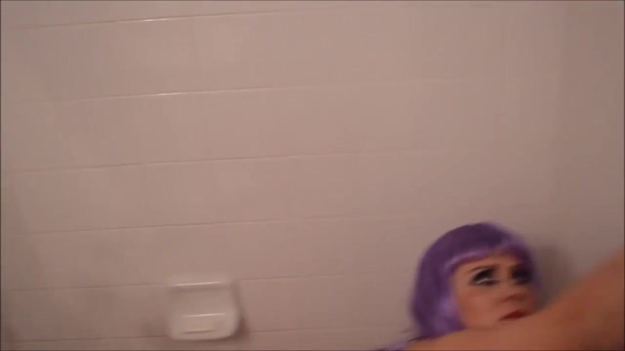 girl with purple hair makes an enema