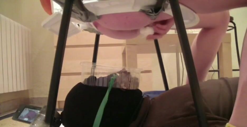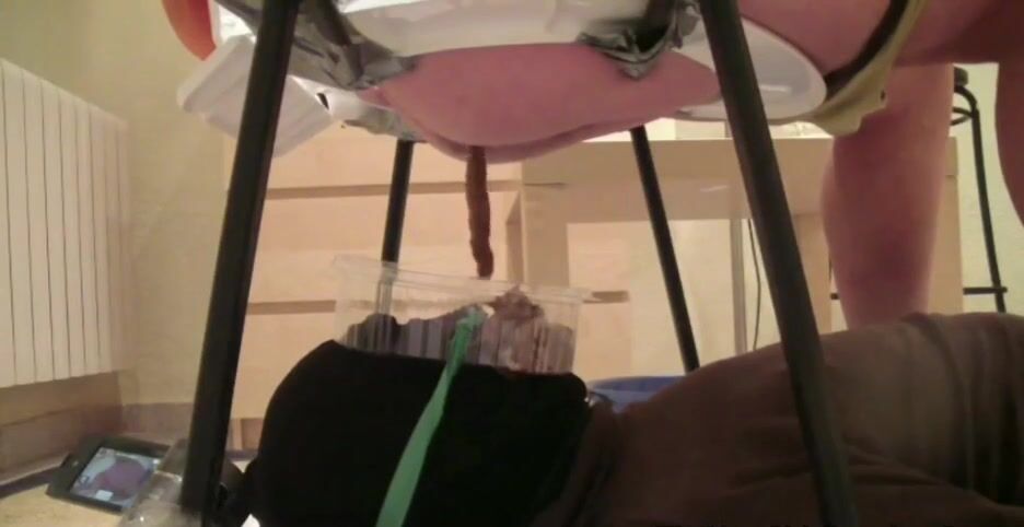 Dirty girl ride a big dildo and shit on it