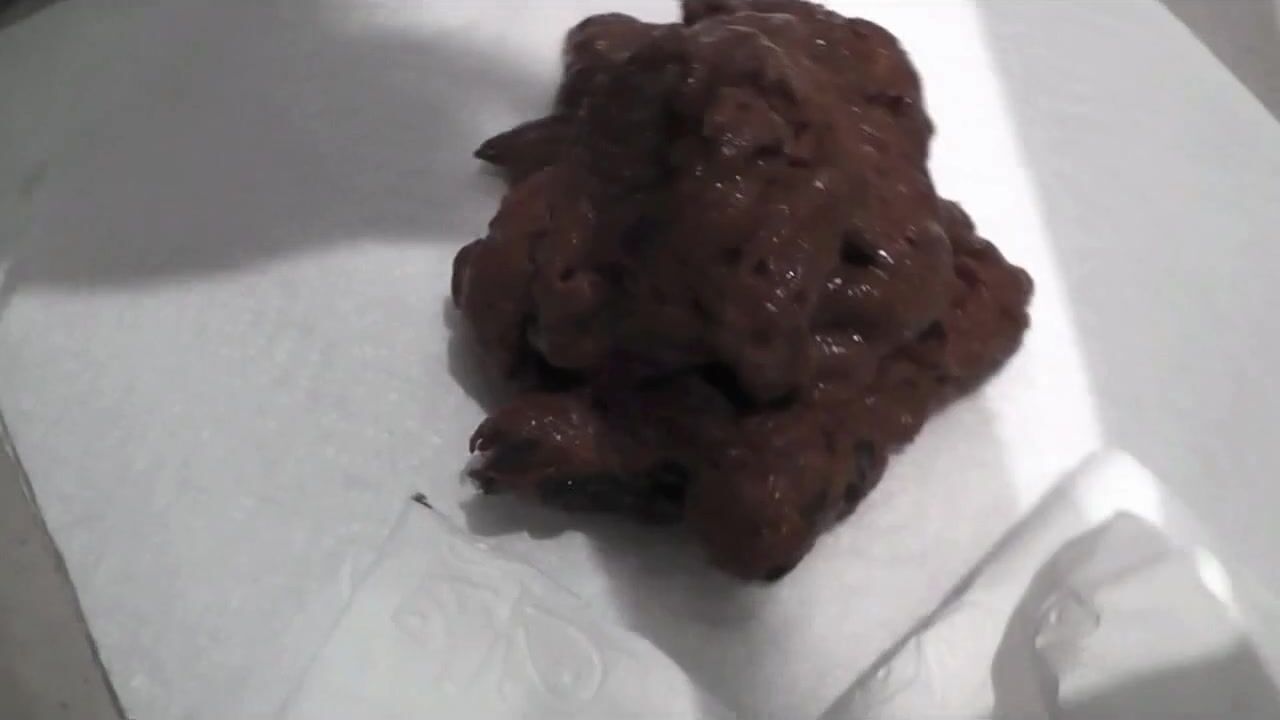 Woman on her side births huge turd.