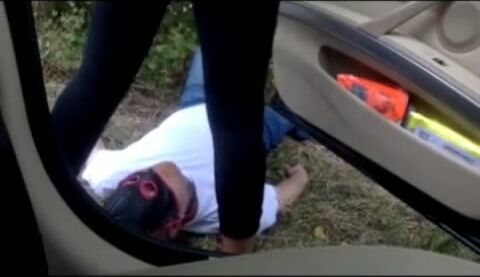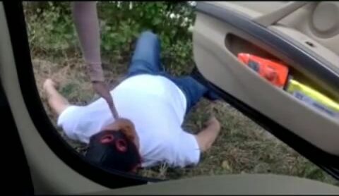 Mulher cagando na boca do homem no meio do mato