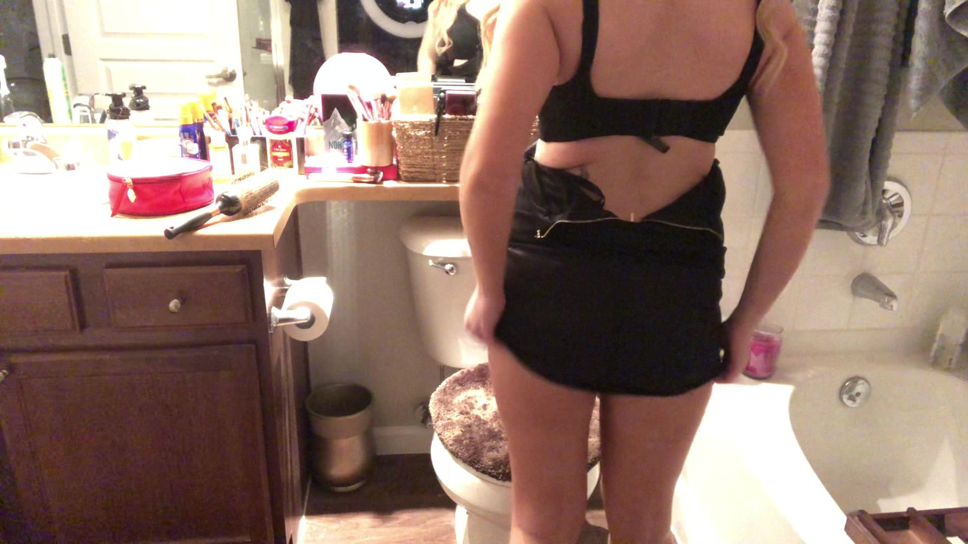 Blonde girl toilet pooping