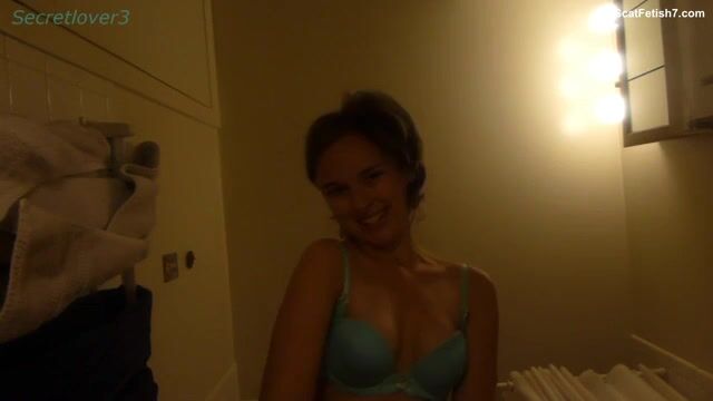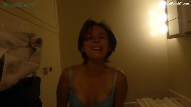 Hot thin babe shits on her floor