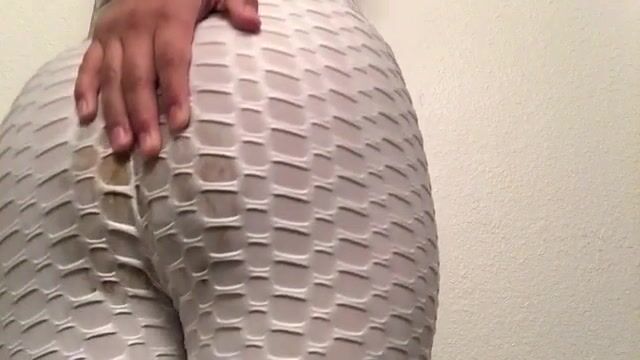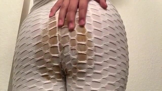 Girl has mushy poop explosion in white leggings