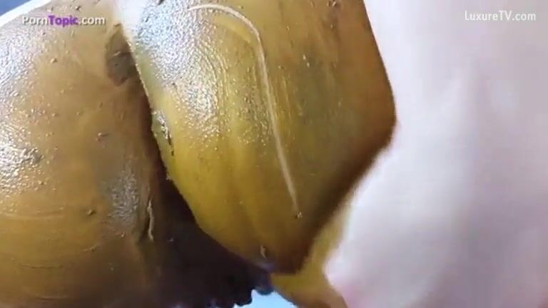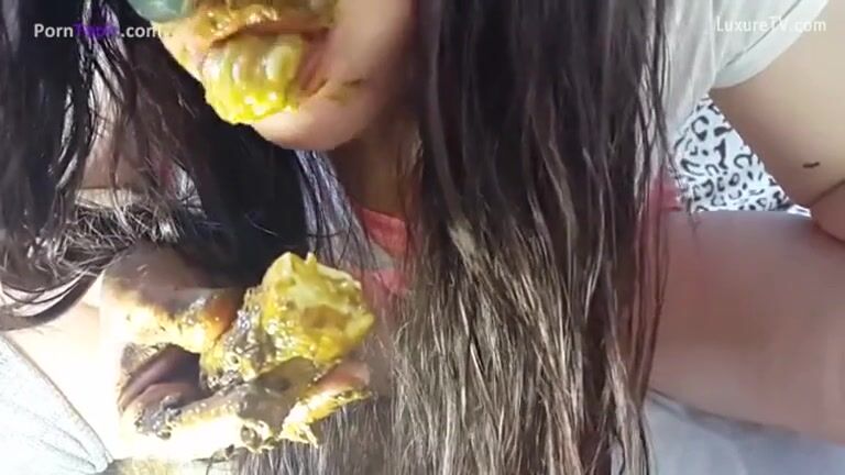 scat girl pooping on banana then eats it outdoor