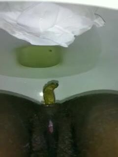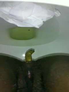 Ebony woman shit and piss on the white plate