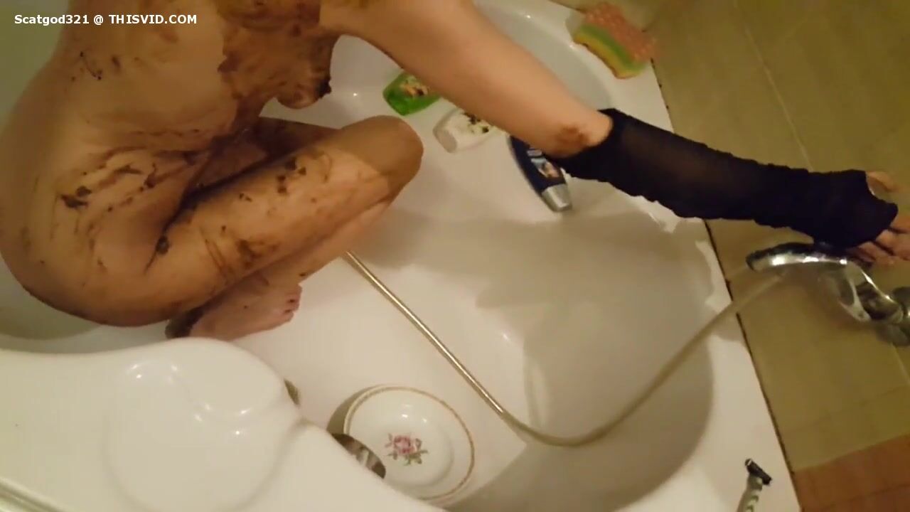Girl shitting in the shower and smering it on body