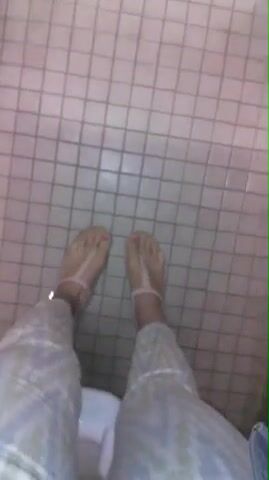 Girl pooping in public bathroom
