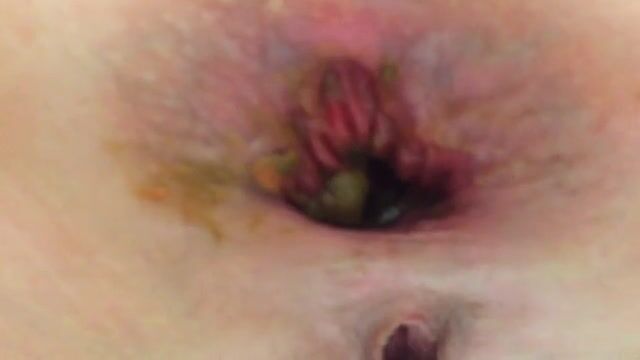 slut pushing out plug, piss and shit
