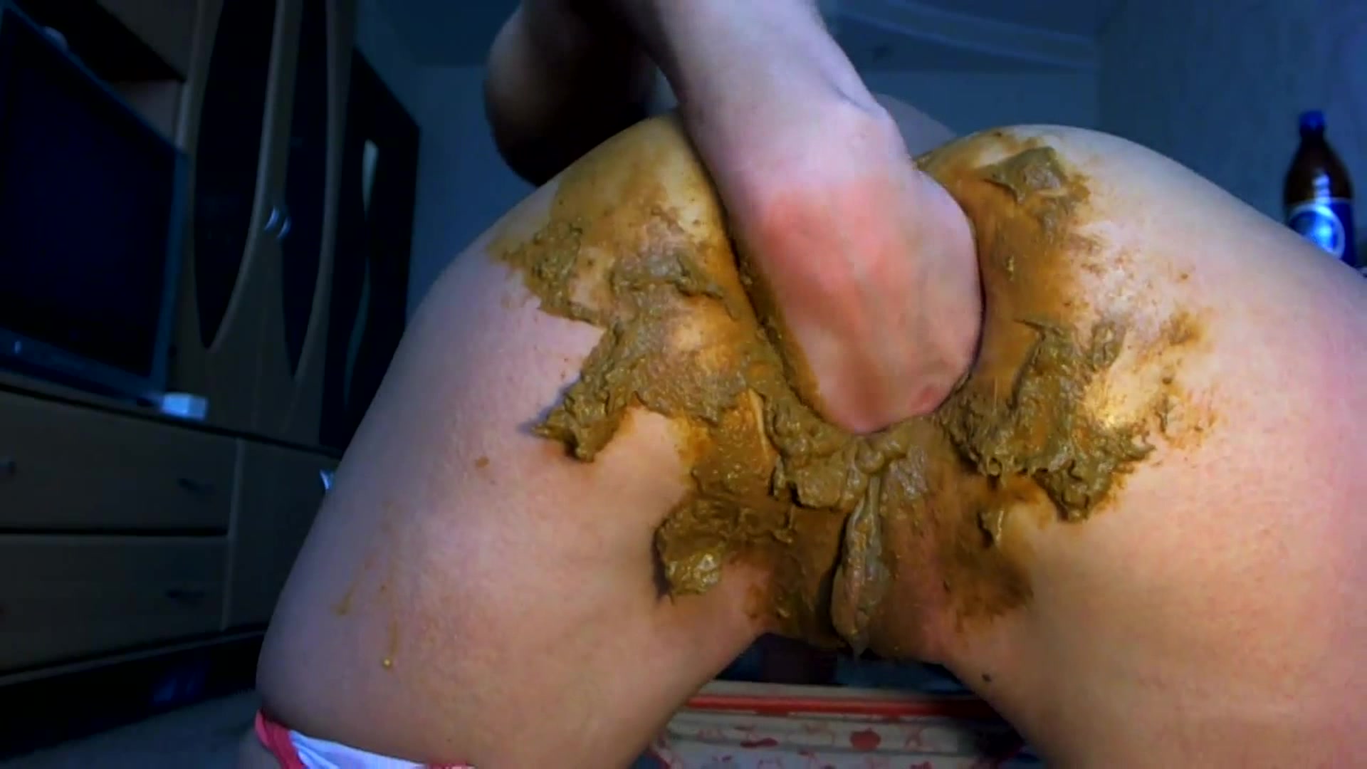 Girl with dirty panties fists her shitting puckered asshole