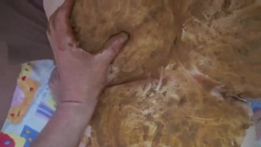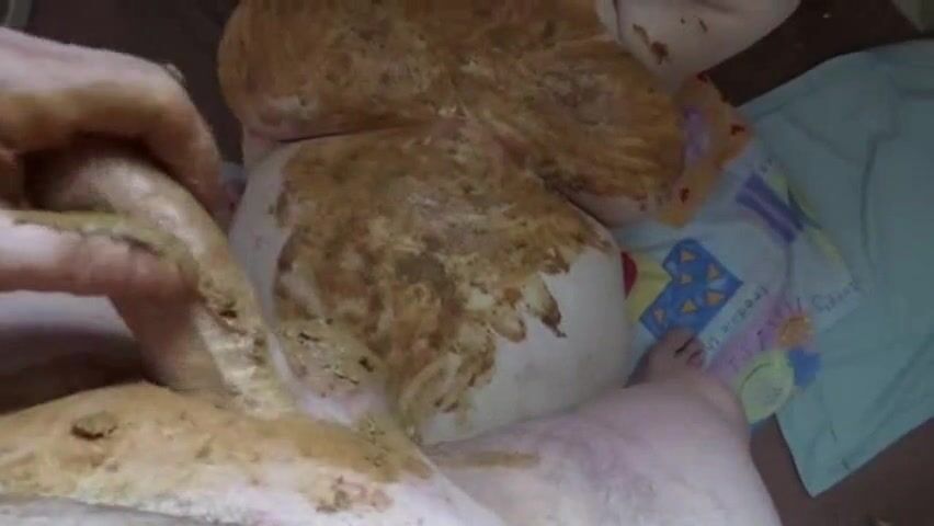 Guy smears shit over his cock and his chubby girlfriend