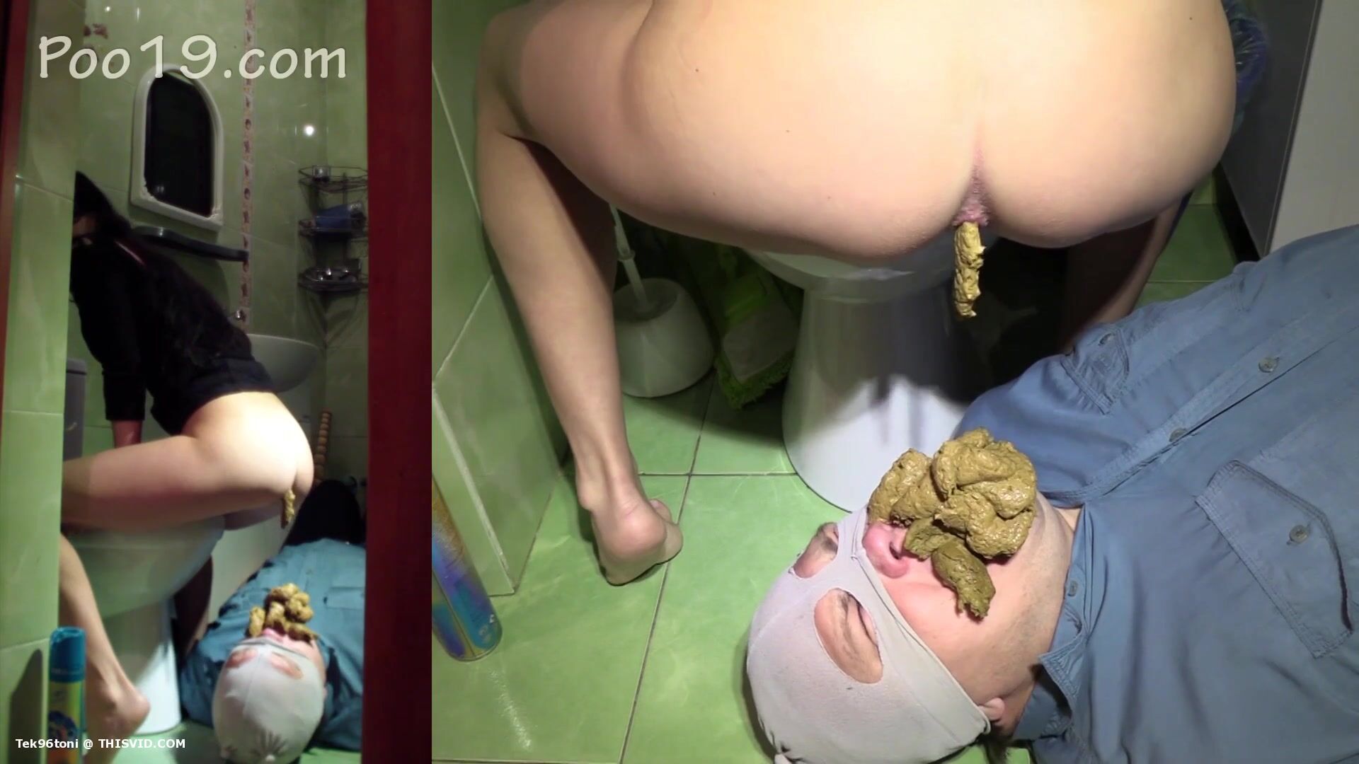 gorgeous brunette craps and pees - video 3