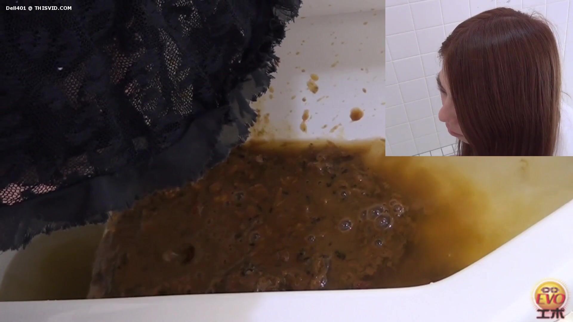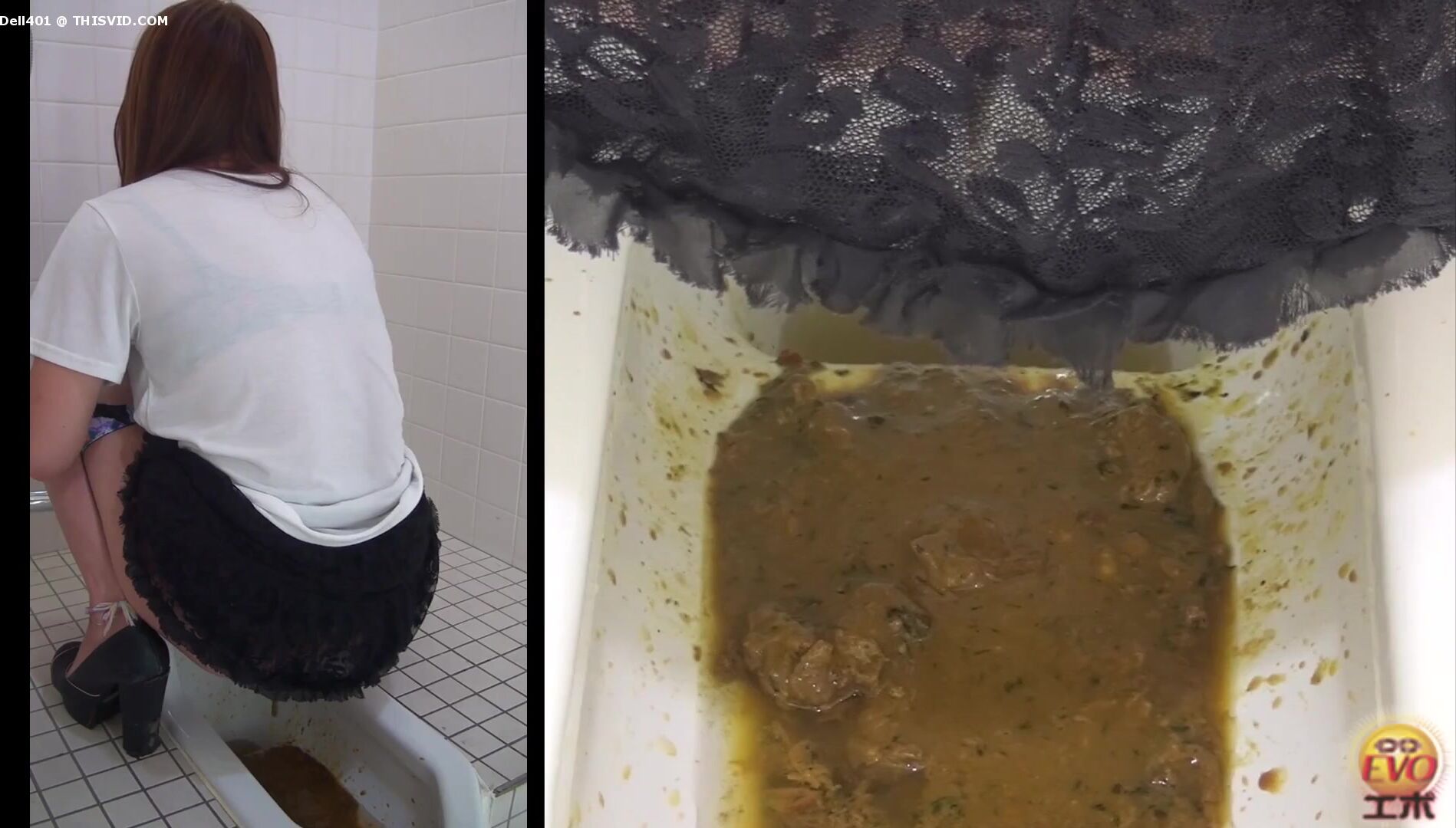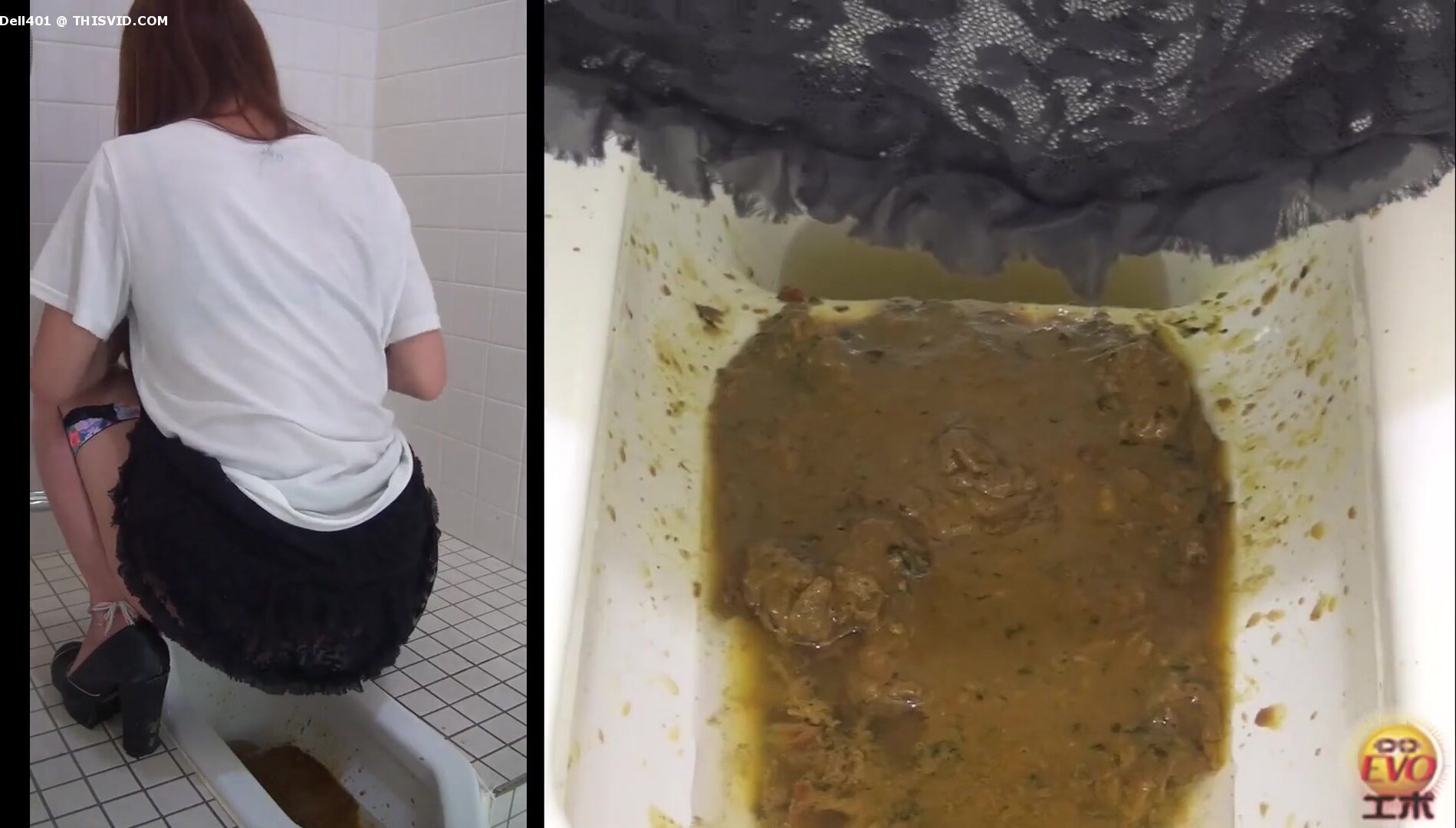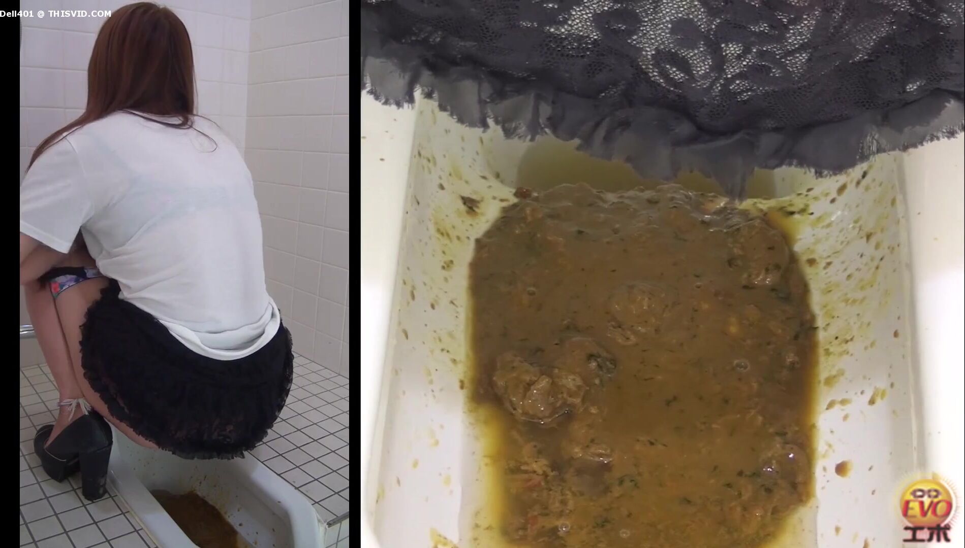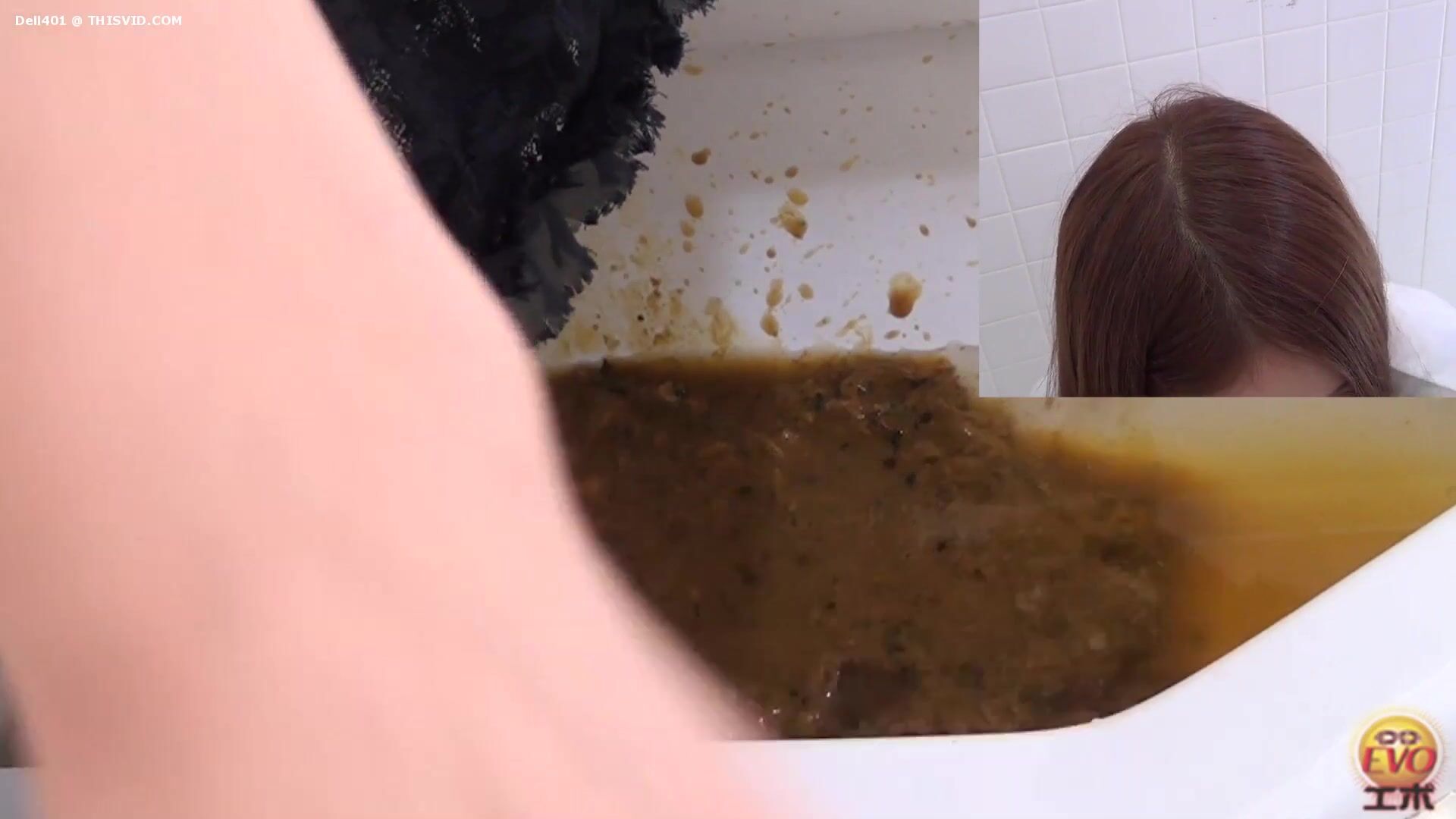 2 Japanese girls diarrhea in floor toilet.