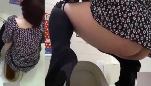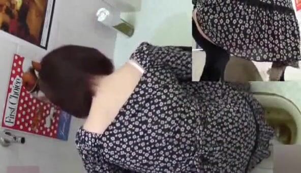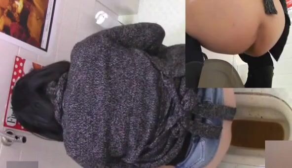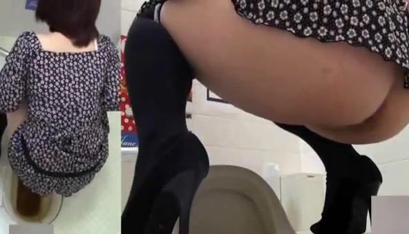 Woman pooping at public toilet at 1.55
