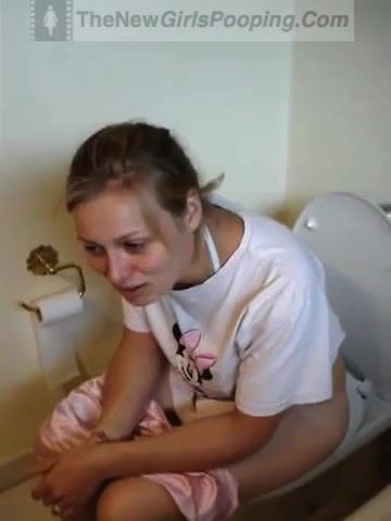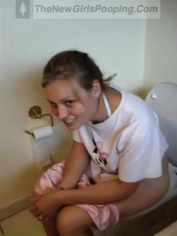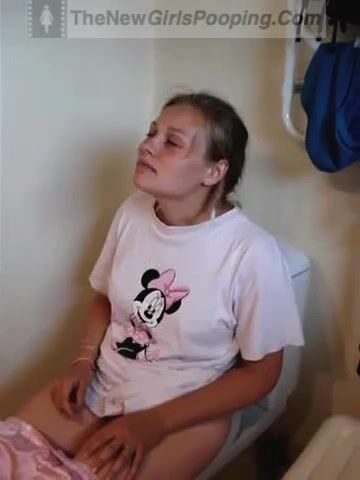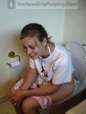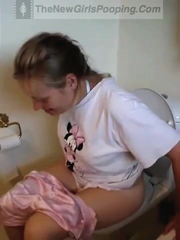 Girl pooping and straining on toilet