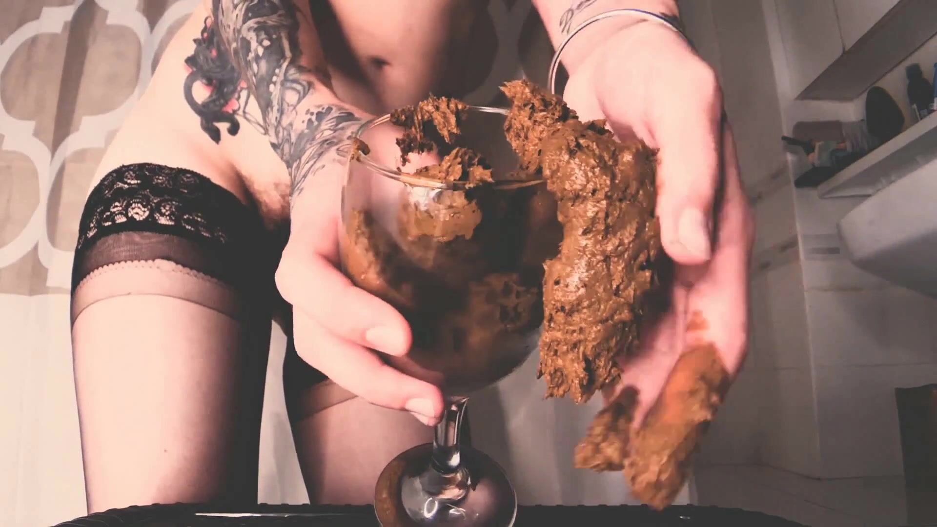 Pierced tattooed pussy milf eating shit, puking