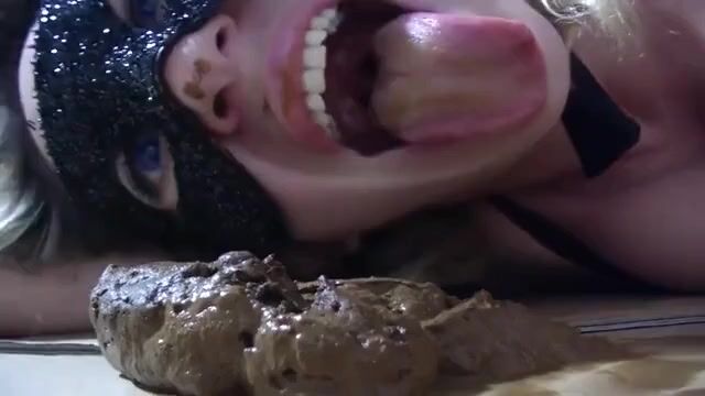 Blonde slut eating her shit