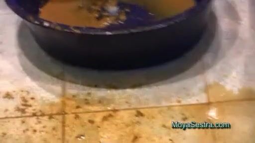 Latina brunette scat and eat in the bathroom