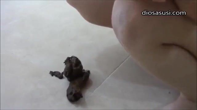 Woman shits on Bathroom Floor