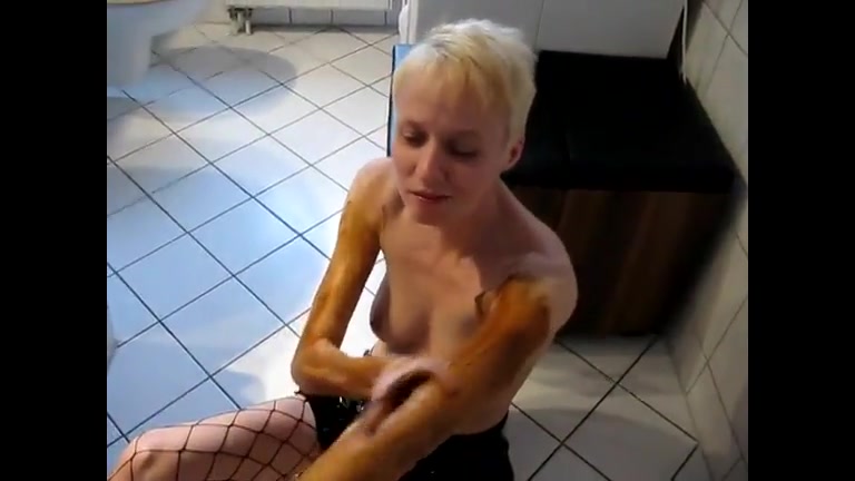 Cute amateur girl playing nasty with poo