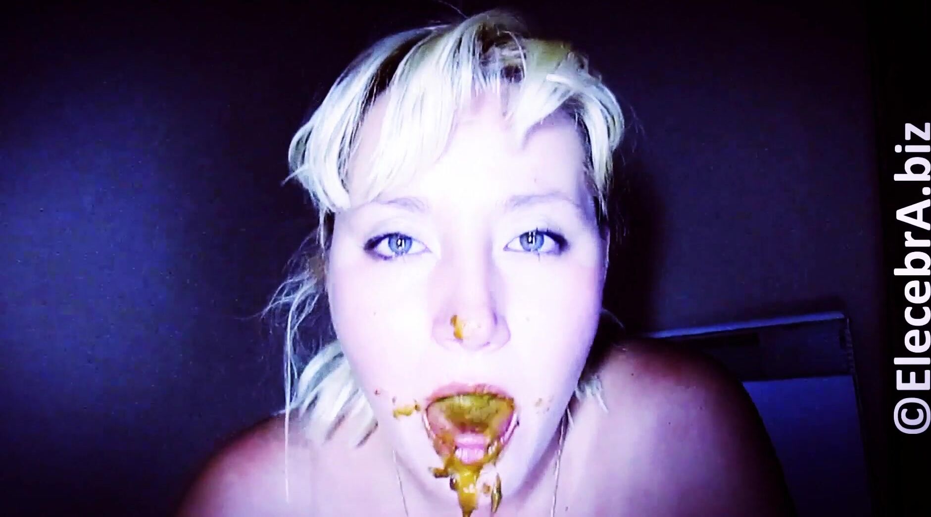 girl eating own shit from blue dildo