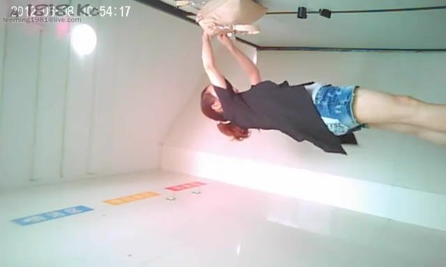 Girl in tight jeans shitting