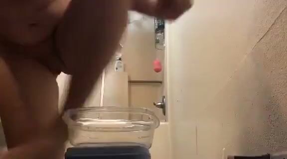 Hot thin babe shits on her floor