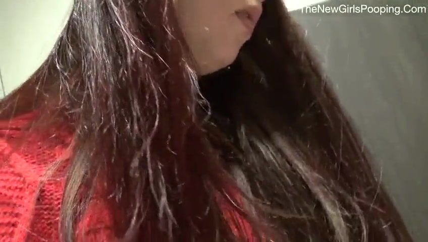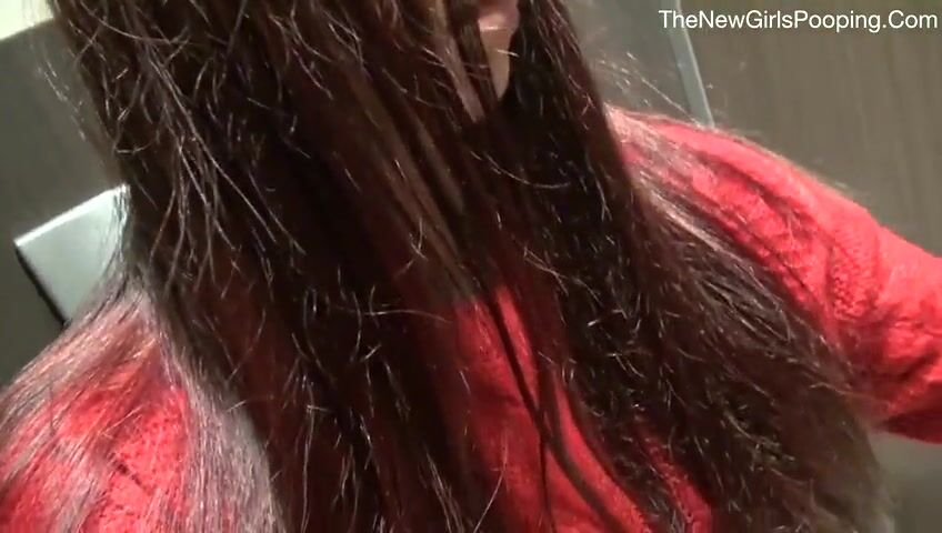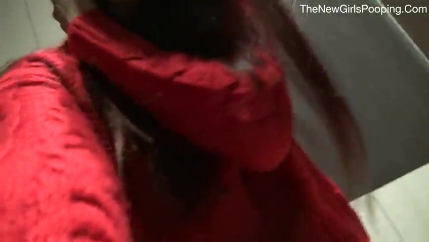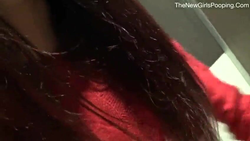 Sexy teen pooping in public toilet