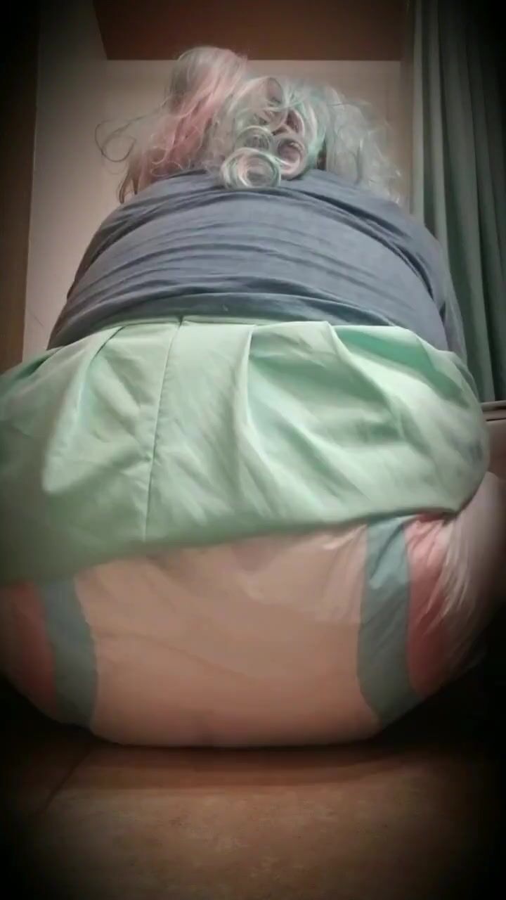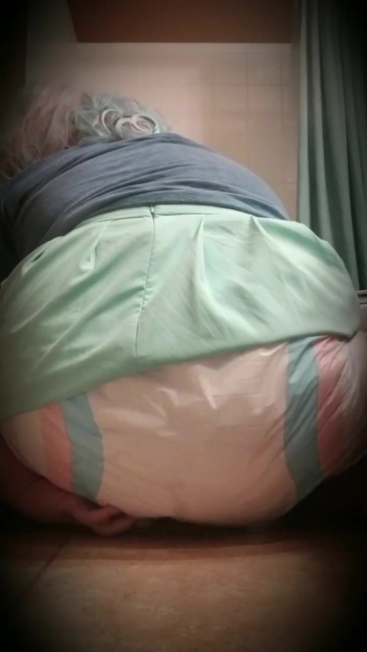 Girl takes a wet poop in her adult baby diaper