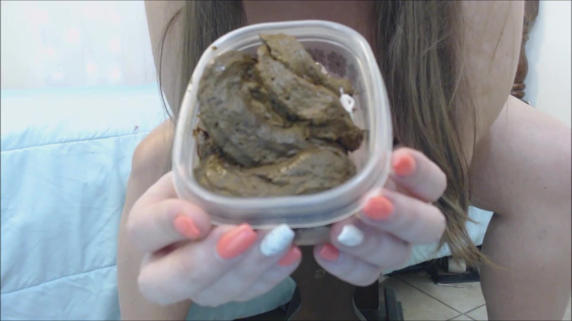 Hot thin babe shits on her floor