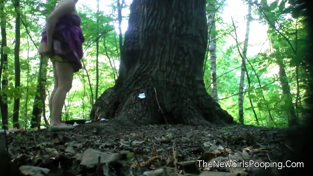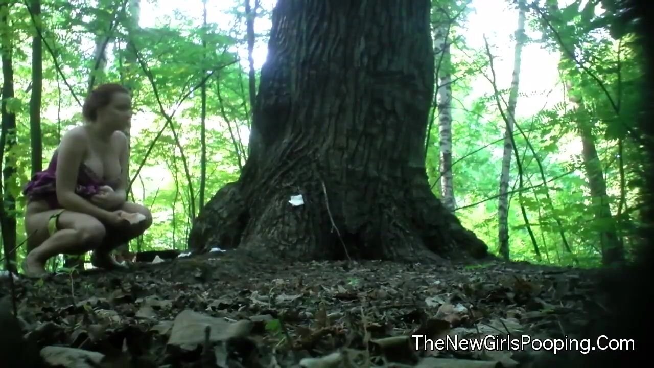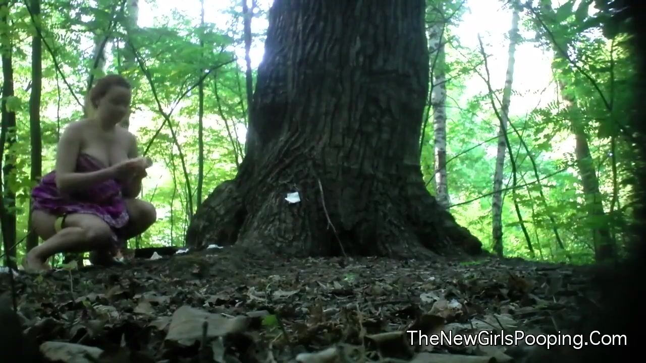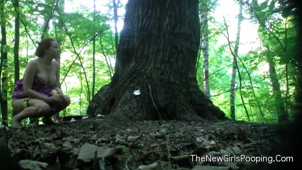 Pregnant girl pooping in woods
