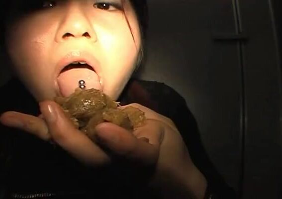 japanese teen struggles to eat shit in public toilet