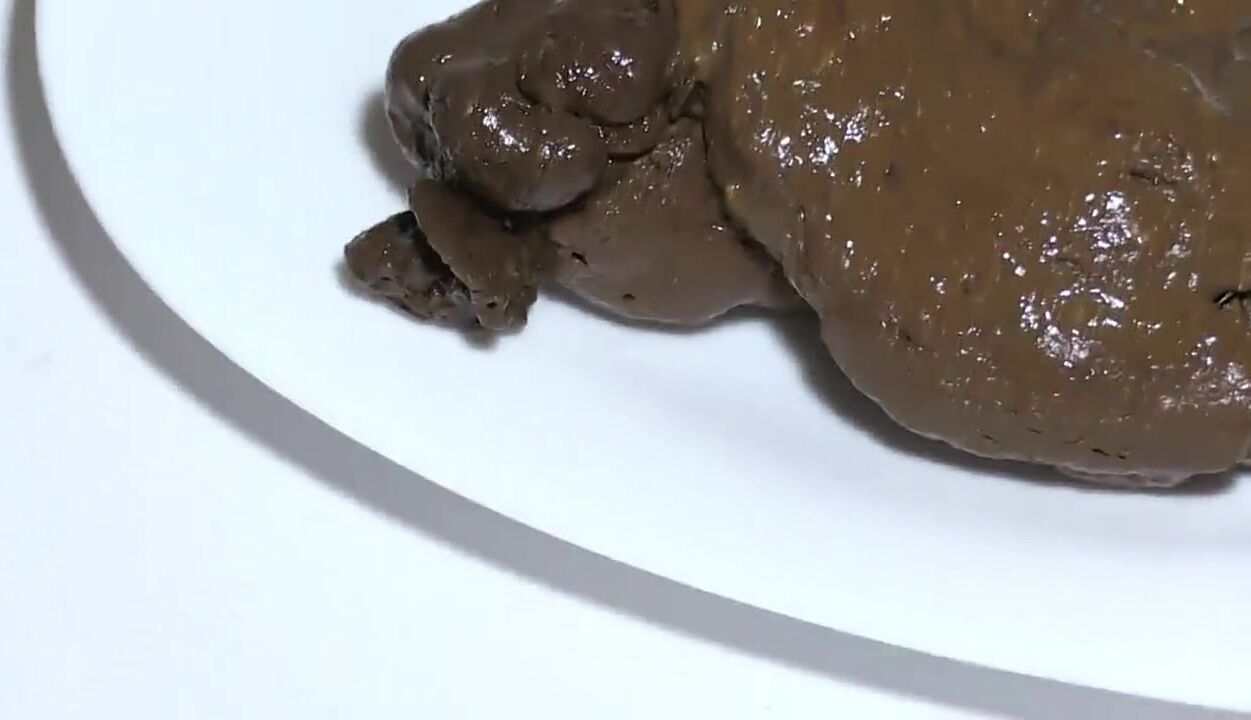 Lucky slave eating his mistress shit as breakfast
