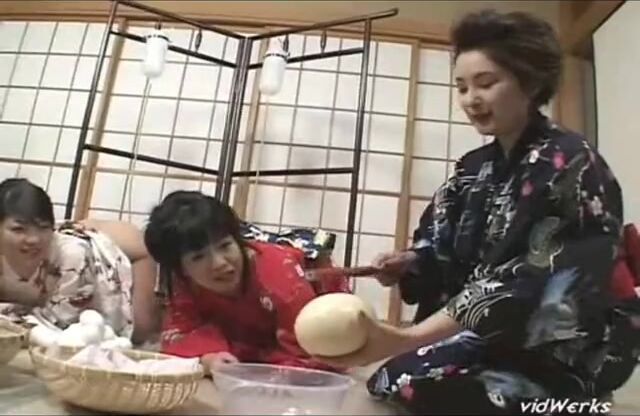 Two geisha women in lesbian scat play - part 1