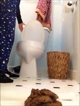 Girl open wide legs and shitting on the toilet floor
