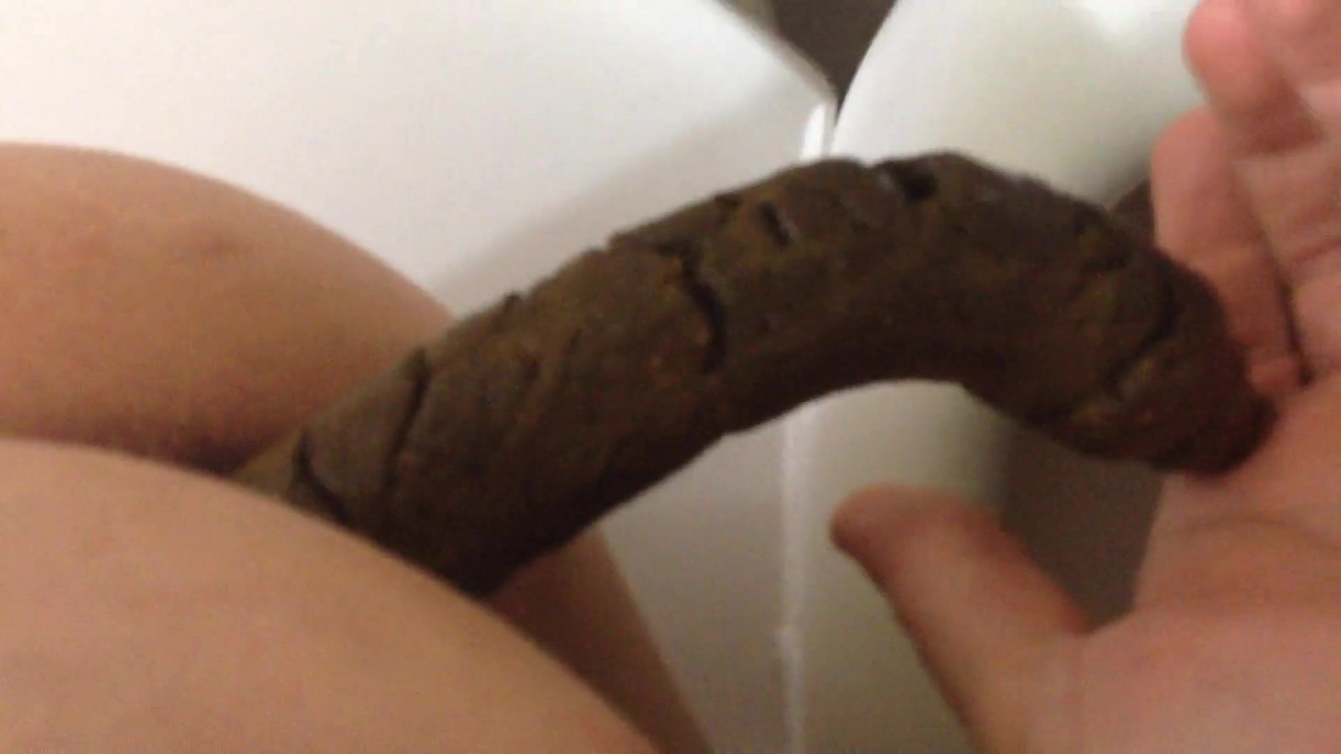 Woman poops perfect turd into her bf's hand