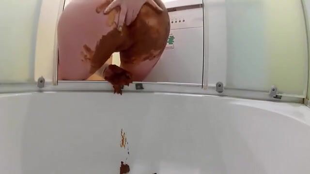 Amateur girl rubbing fresh shit on her shaved pussy