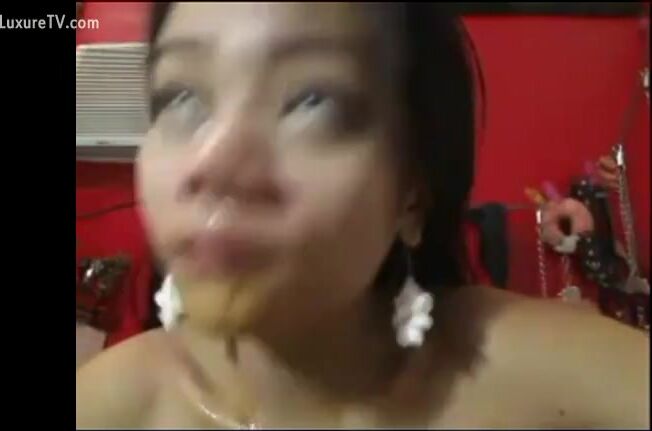 Webcam girl eating her shit
