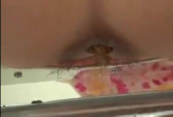 Girl open wide legs and shitting on the toilet floor