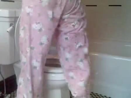 Girl open wide legs and shitting on the toilet floor