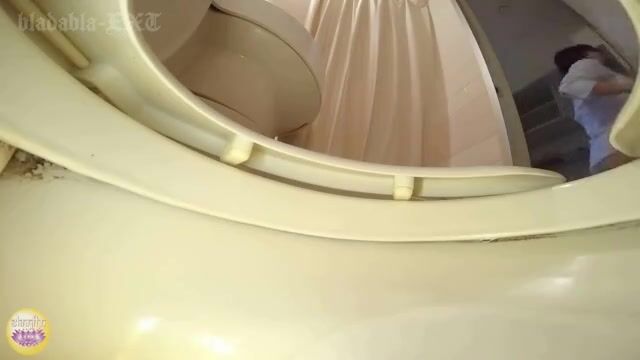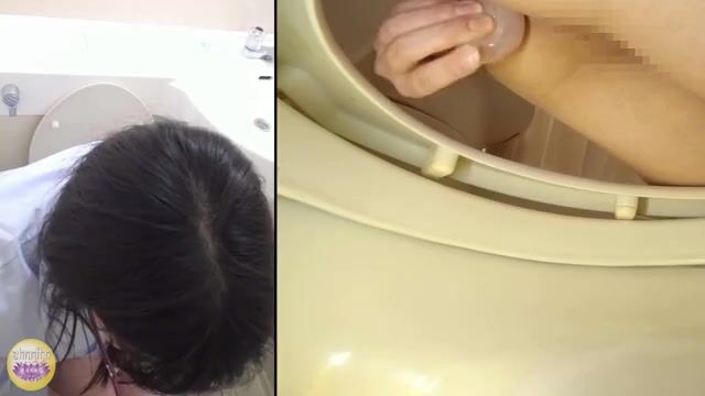 Japanese office worker girl expels in a western style toilet